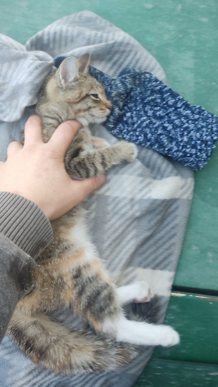 В Уфе спасли котенка, застрявшего в окне.