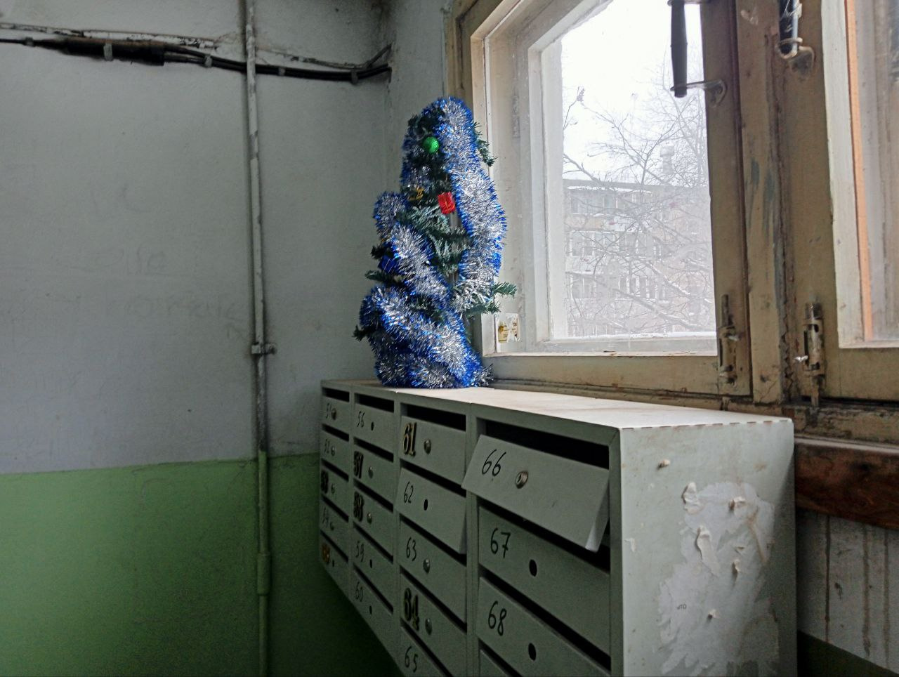 Елка в подъезде на Рябинина, 49а украшена в лучших традициях «Сима-ленда»