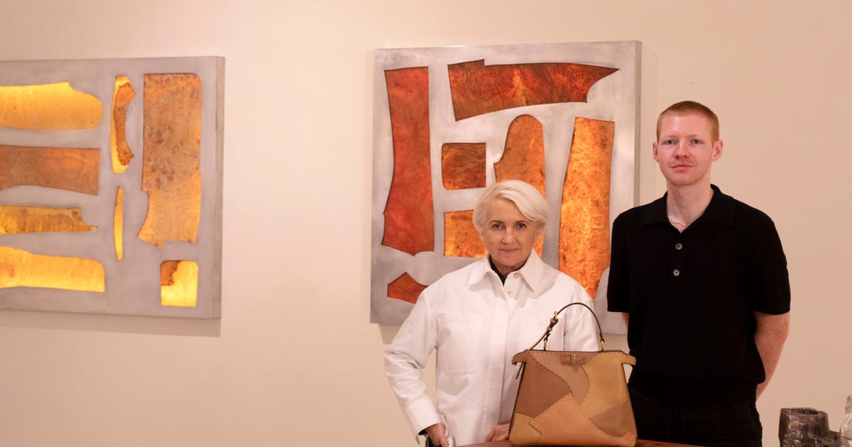Son goût est sans frontières. « Je regarde tout ce qui m’attire sur internet et Instagram. Je fais des captures d’écran et, ensuite, je me lance dans des recherches approfondies. La décision vient après avec l’intuition, explique Silvia Venturini Fendi, œil de lynx sous sa crinière blanche, détermination sans faille sous un sourire charmeur à l’italienne. Quand j’ai découvert le mobilier de Kemmenoe, il m’a parlé dans l’instant et rappelé les créations du Brésil où j’ai vécu un temps. Ses jeux de marqueteries sont très proches de la manière dont nous pensons notre travail. Ce qu’il fait avec le bois, nous le faisons avec le cuir. J’adore ce matériau, comme les pierres et tout ce qu’il y a dans la nature faite de contrastes », résume-t-elle. Soucieuse des valeurs de famille que porte la maison, cette passionnée des savoir-faire anciens s’est tout de suite retrouvée dans les œuvres du designer aux géométries savantes, inclusions de matières subtiles et déclinaisons de lumière raffinées.