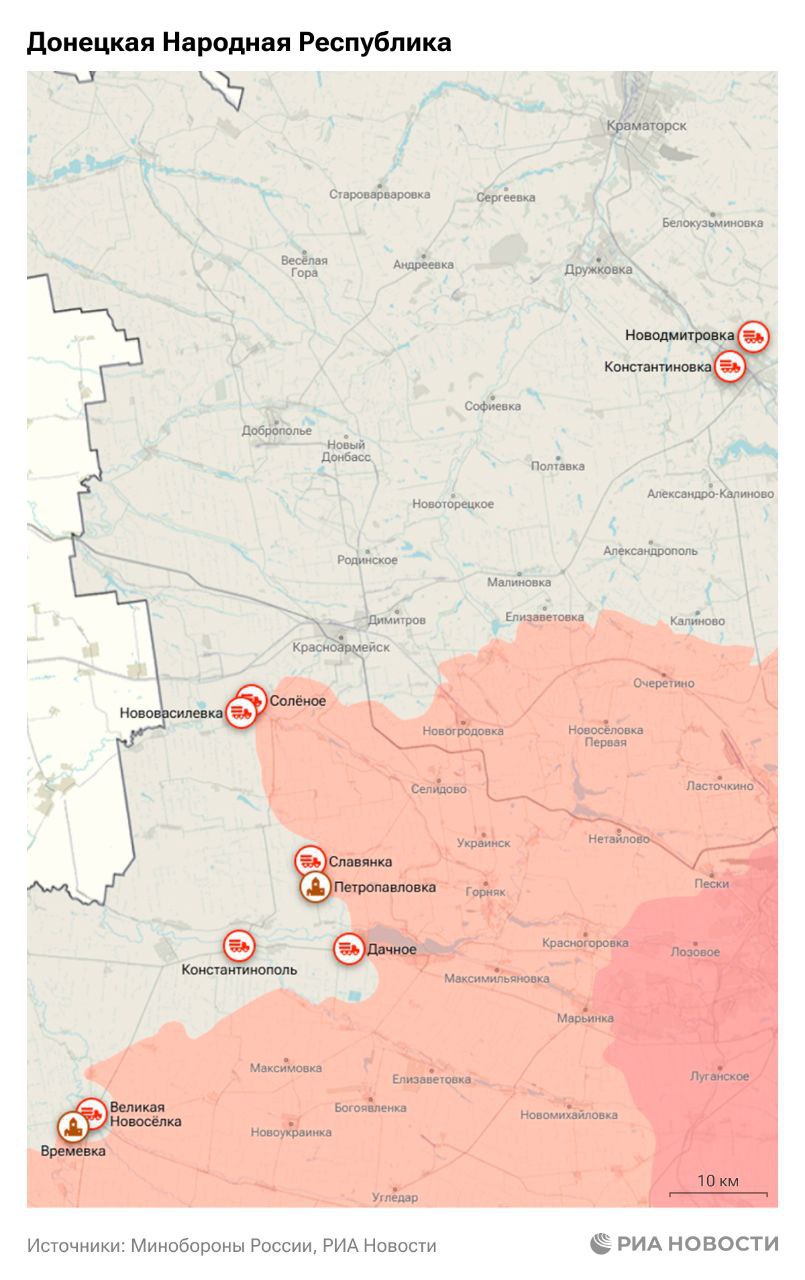 ▪️Российские войска освободили Петропавловку и Времевку в Донбассе, сообщило Минобороны;