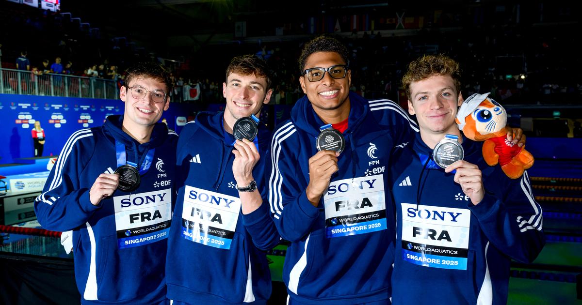 Mondiaux de natation : «choqué», «truc de ouf», «vraiment fière»… les Bleus portés par le record du monde de Léon Marchand