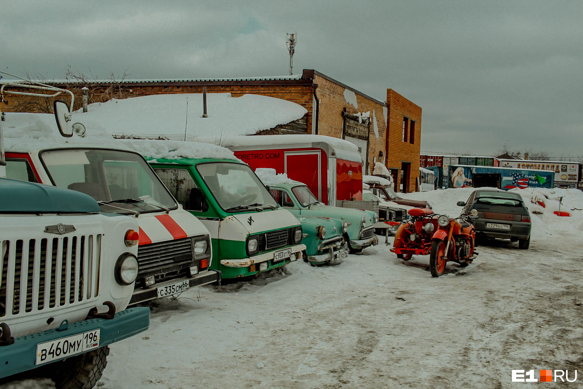 Но вот место, в которое мы сейчас вас поведем, больше про американские машины. Когда заходишь во двор на Реактивной, 81, это чувствуется — но отечественные автомобили и мотоциклы («Уралы» и «Москвичи», например) тут тоже есть.