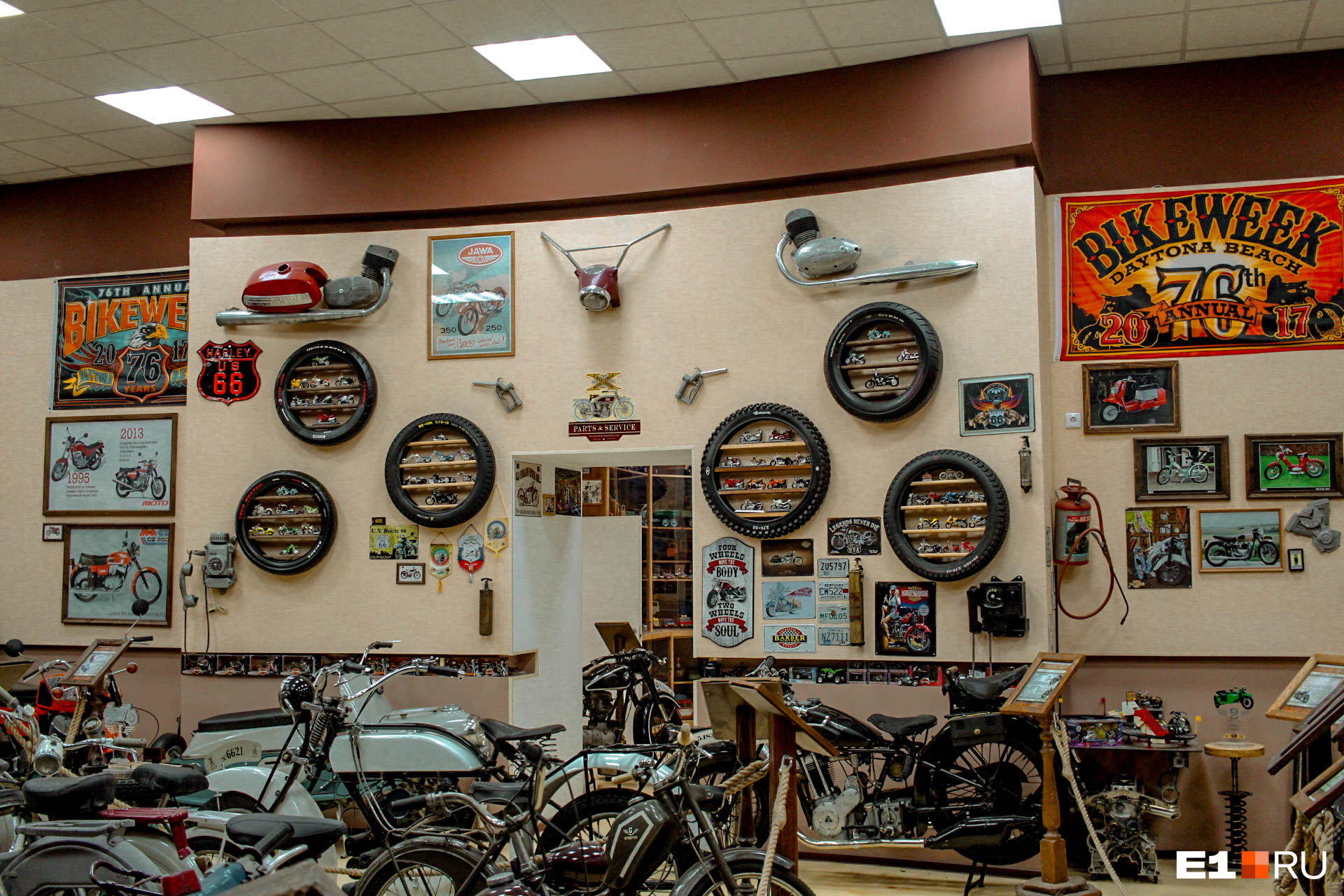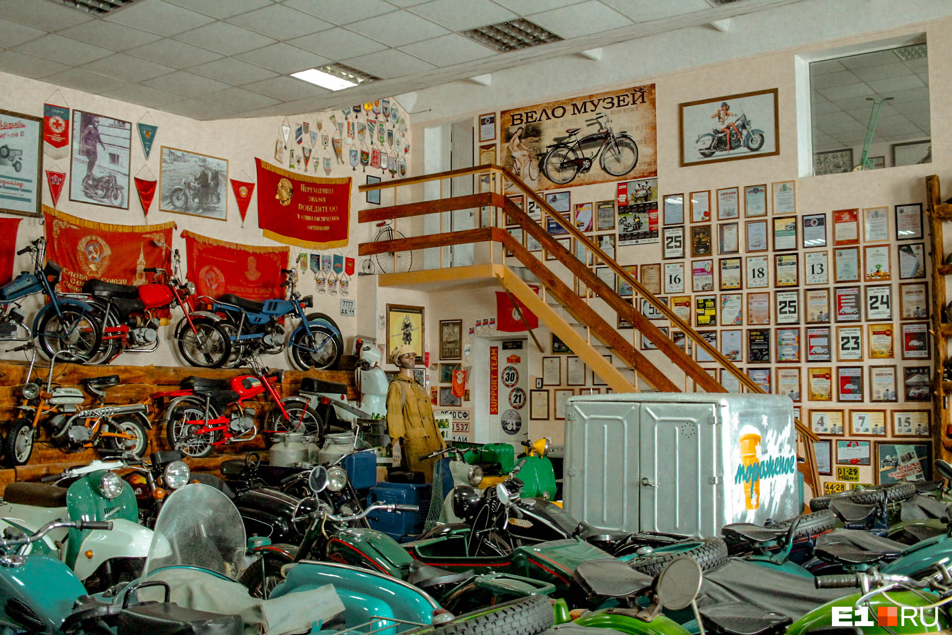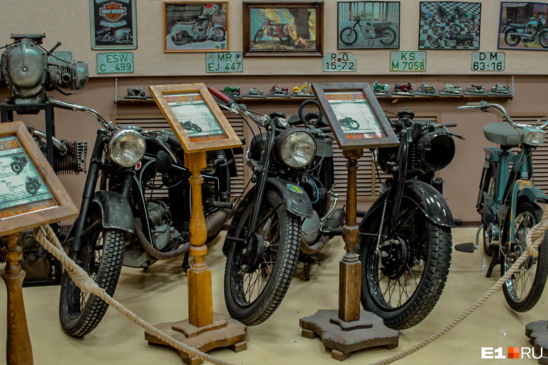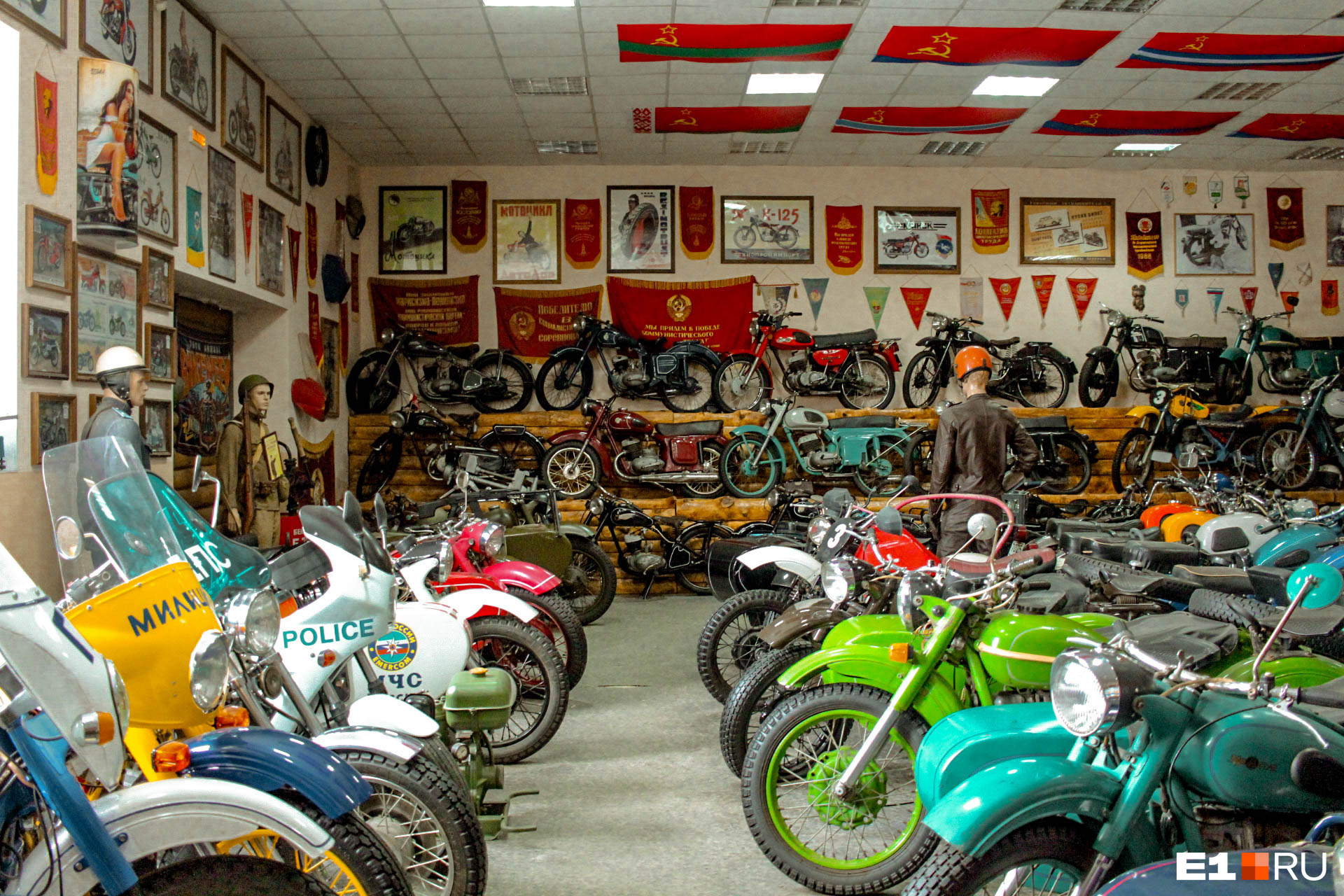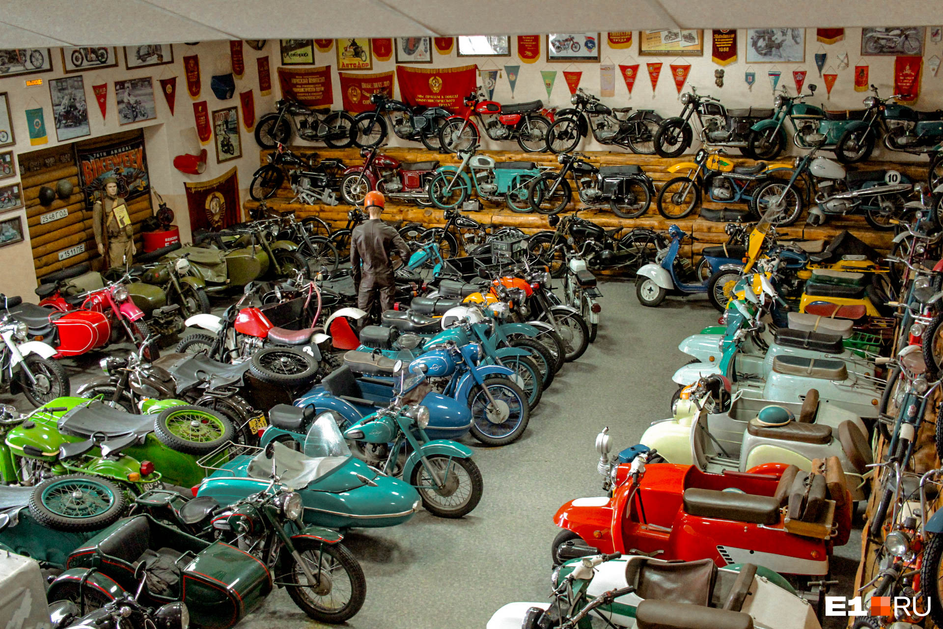 В коллекции мотоциклов советского периода есть служебные модели, которые использовали милиционеры, а еще мотороллер, который развозил мороженое, и мопеды.