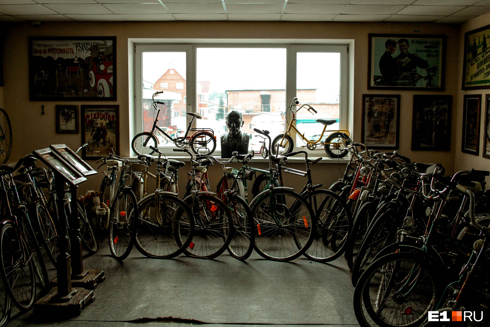 Чтобы попасть во второй зал с мотоциклами, нужно выйти из первого и пройти по двору до большегруза. Там будут две двери, каждая ведет к своей экспозиции. В первой собрана коллекция советских мотоциклов и разных велосипедов. Смотрителя в других залах нет, поэтому нужно самому всё разглядывать и читать описания на табличках.