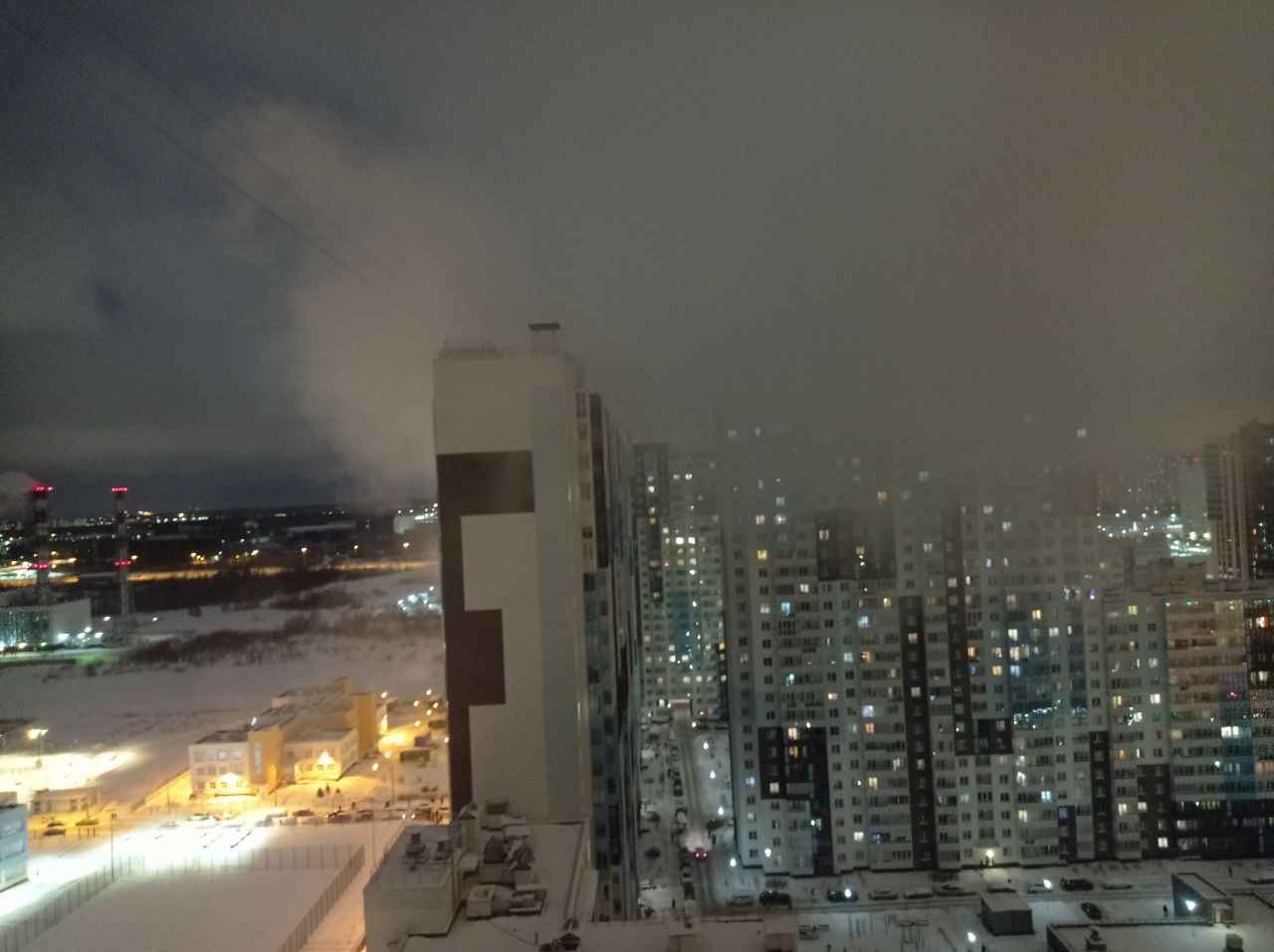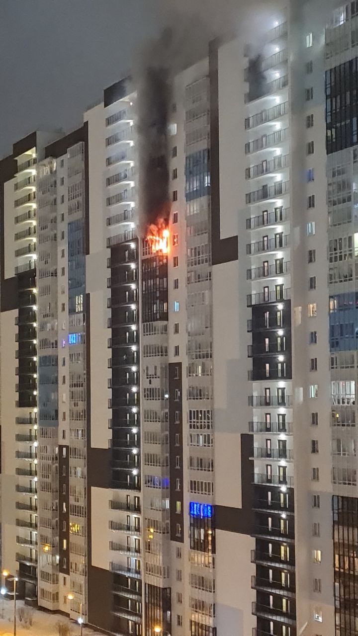 Очевидцы засняли охваченную пламенем квартиру на Плесецкой улице (ЖК «Чистое небо»). Возгорание произошло на 19 этаже.