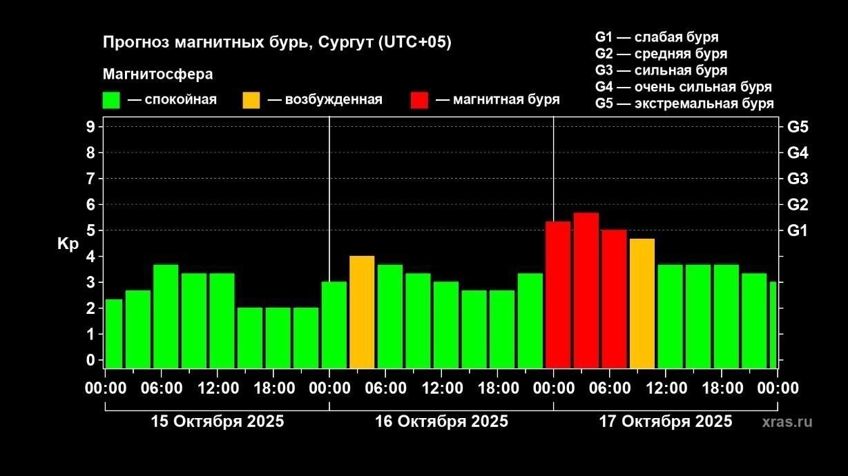Прогноз магнитных бурь в ХМАО на 16 октября