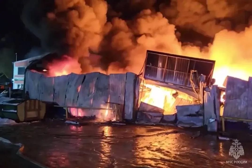 Пожар в складских помещениях в Петербурге. Видео © t.me / МЧС России