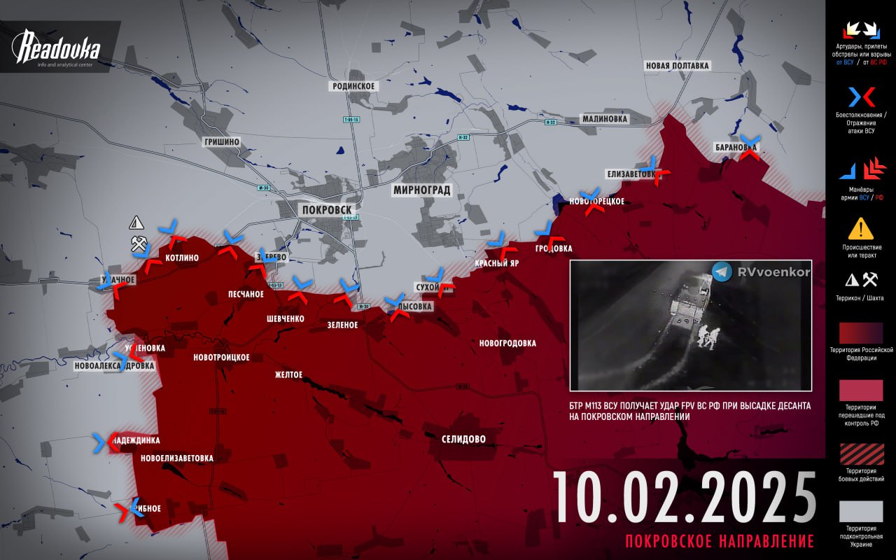 ВСУ безуспешно попытались подрезать фланги наступающей силе ВС РФ к югу от Покровска — итоговая сводка Readovka к исходу 10 февраля