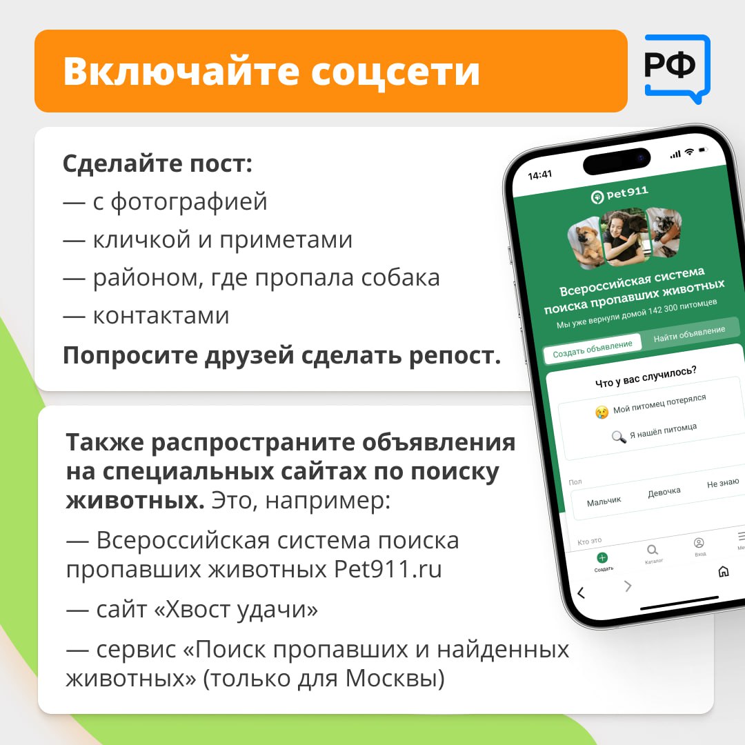 🐩Даже самая послушная собака может убежать — например, погнаться за кошкой или испугаться салюта. Что делать, если пёс потерялся? Сразу начать действовать!