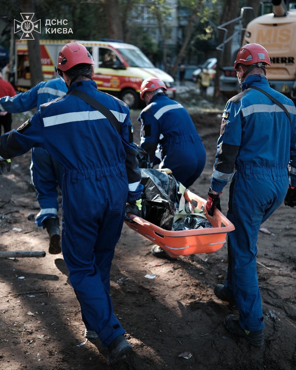 По данным Киевской городской государственной администрации (КГГА), спасатели извлекли из-под завалов разрушенного дома ещё три тела, в результате чего общее количество погибших в результате атаки достигло 31 человека.