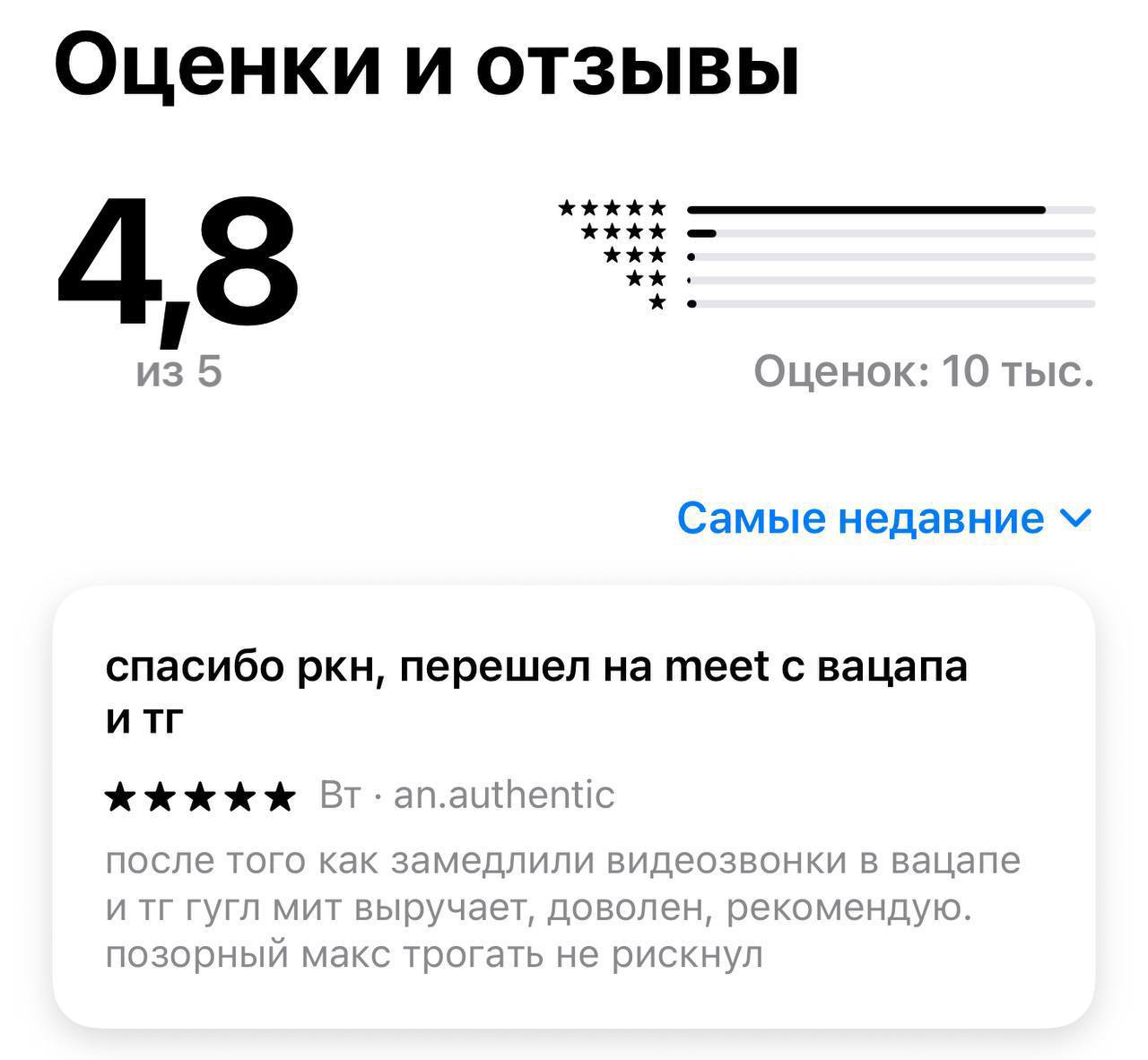 Тем временем россияне массово переходят в Google Meet после ограничения звонков в Telegram и WhatsApp.