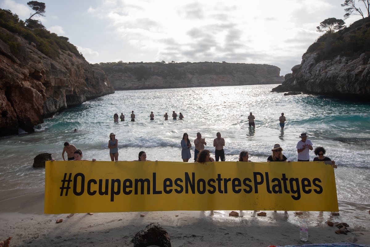 Hace veinte años a muchos les costaba llegar a Es Caló des Moro, una pequeña cala de aguas cristalinas entre acantilados de acceso abrupto en el municipio mallorquín de Santanyí. Su ubicación no estaba señalizada en los letreros de la carretera y muchos llegaban gracias a las indicaciones de amigos que habían estado alguna vez. El verano pasado, la cola para acceder a la cala llegó a alcanzar las tres horas y pocos en la isla conocen a algún residente que se haya aventurado a ir por placer en los últimos años. Dejar la toalla y la cesta era misión imposible, la orilla estaba minada de personas haciéndose fotos, el camino de acceso había quedado totalmente erosionado y los conductores que trataban de evitar los veinte minutos de paseo desde el aparcamiento más cercano embotellaban con sus coches el pequeño núcleo de viviendas impidiendo a los vecinos salir de sus casas. Este domingo, alrededor de 300 residentes han tomado la playa con el objetivo de visibilizar las consecuencias que la masificación turística tiene para los vecinos de Mallorca.