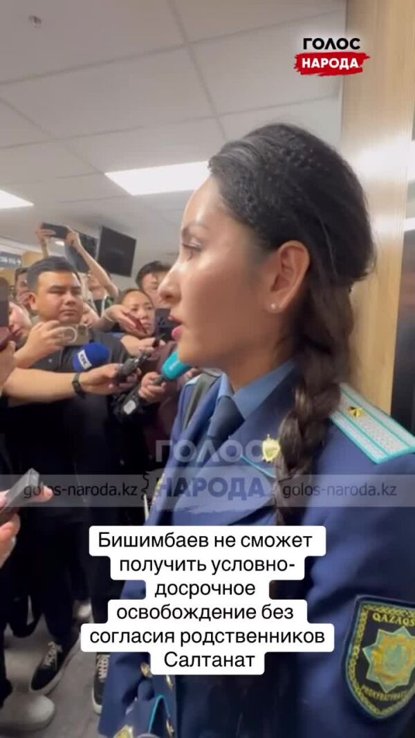 После оглашения решения многие задались вопросом, сможет ли Куандык получить разрешение на условно-досрочное освобождение. На этот вопрос ответила прокурор Айжан Аймаган. После заседания она вышла к журналистам. Прокурор отметила, что Бишимбаев не сможет получить условно-досрочное освобождение без согласия родственников Салтанат.
