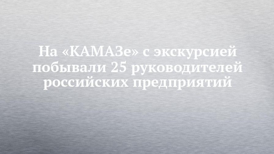 В составе делегации – свыше 25 руководителей различных российских организаций и предприятий. В ходе ознакомительной экскурсии они посетили тренинговый центр компании – Фабрику процессов. Затем группа направилась на автомобильный завод, где ознакомилась с работой конвейера сборки кабин и главного сборочного конвейера. Также делегация посетила самый новый завод компании – завод каркасов кабин и побывала в НП «КАМАЗ-Автоспорт», где базируется знаменитая спортивная команда «КАМАЗ-мастер».
