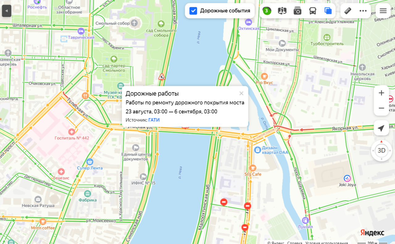 По данным «Яндекс.Карт», на Славы пробки в обе стороны растянулись примерно на
