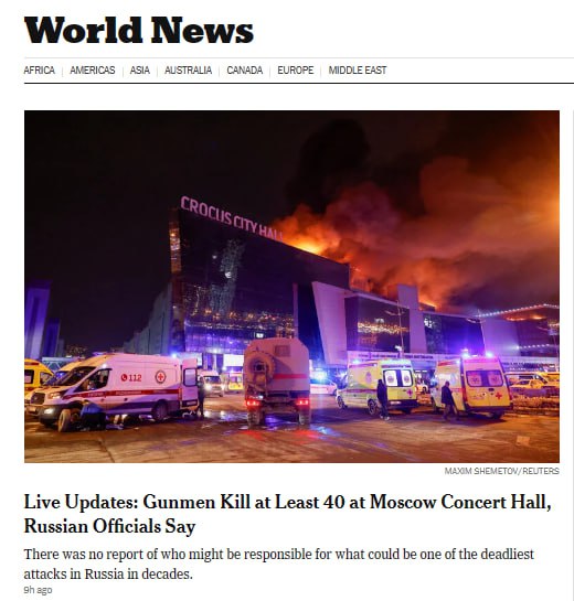 🔺The New York Times: Американские официальные лица обеспокоены тем, что Путин может попытаться ложно обвинить Украину в пятничном теракт, а также оказать давление на западные правительства, чтобы они поддержали эту ложную версию событий.