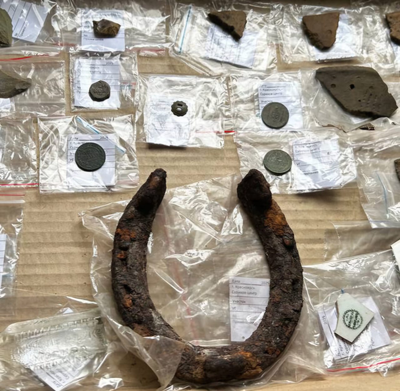 Кроме того, фонды музея Сурикова пополнят найденные в центре Красноярска предметы XIX и начала XX веков. Это медальон, обломки посуды Кузнецовского фарфорового завода, жетон извозчика, пуговицы сюртуков, монеты, нательные кресты, сообщил в своём телеграм-канале мэр города Владислав Логинов.