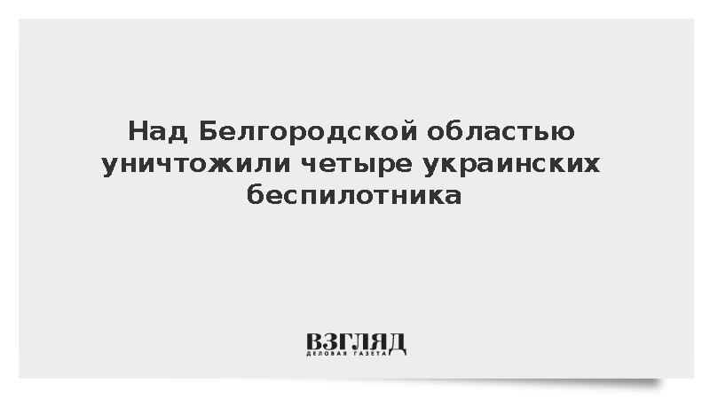 В Telegram-канале Минобороны говорится, что с 08.20 до 09.00 по московскому времени над Белгородской областью были уничтожены четыре беспилотных летательных аппарата самолетного типа. Беспилотники были украинского производства, их ликвидировали дежурные средства ПВО, уточнили в военном ведомстве.