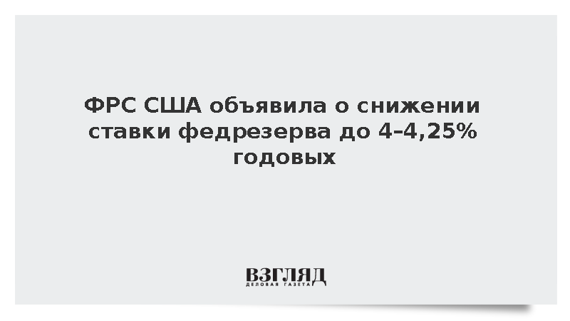 «В поддержку своих целей и в свете изменения баланса рисков Комитет принял решение снизить целевой диапазон ставки по федеральным фондам на 1/4 процентного пункта с 4 до 4 -1/4 процента. При рассмотрении дополнительных корректировок целевого диапазона ставки по федеральным фондам Комитет тщательно оценит поступающие данные, изменение прогноза и баланс рисков», – сказано в релизе.