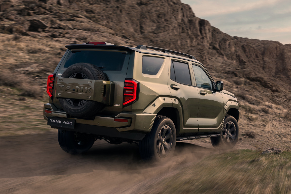 В Китае серийный Tank 400 дебютировал в 2023 году. Модель имеет переднюю двухрычажную подвеску и задний неразрезной мост. Длина вездехода с учетом наружной запаски на багажной двери равна 4985 мм, ширина – 1960 мм, высота – 1905 мм, колесная база – 2850 мм. Паспортный дорожный просвет предназначенного для России внедорожника – 235 мм. Угол въезда составляет 33 градуса, съезда – 31 градус. Максимальная глубина преодолеваемого брода – 800 мм. Внедорожник строго пятиместный. Объем багажника – 566 литров, со сложенными спинками второго ряда кресел этот показатель увеличится до 1803 литров.
