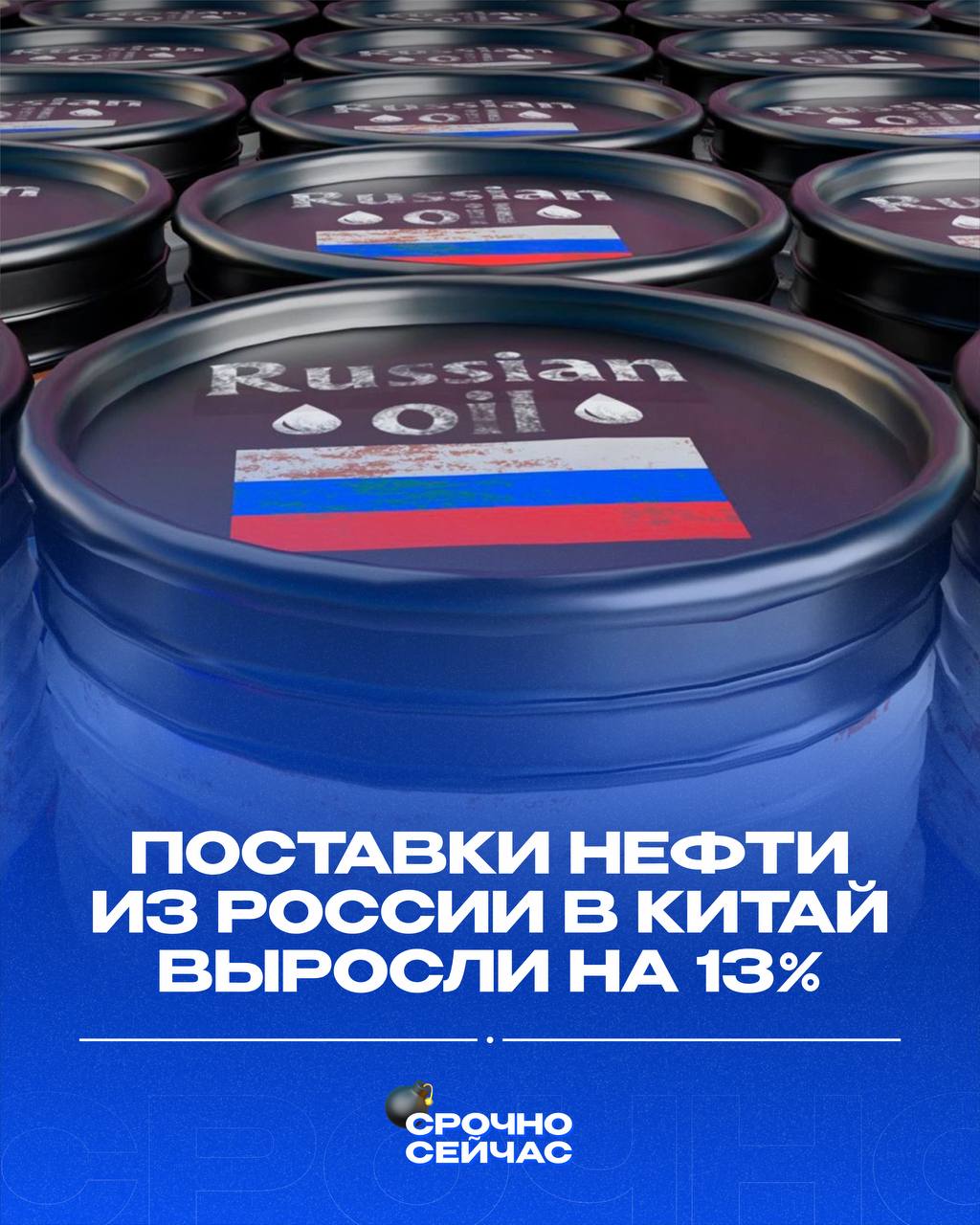 Поставки нефти из России в Китай в марта выросли на 13% по сравнению с мартом прошлого года. А стоимость поставок за январь-февраль составила $9,9 млрд. Объем торговли между РФ и КНР за первые 4 месяца 2024 года вырос на 9,3% по сравнению с аналогичным периодом прошлого года☝🏻
