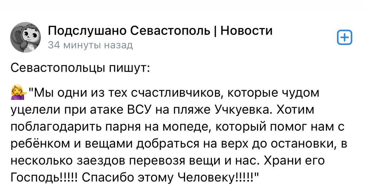 Жители Севастополя благодарят неравнодушных за помощь во время атаки ВСУ на Учкуевку. Вот что пишут в местных чатах 👆