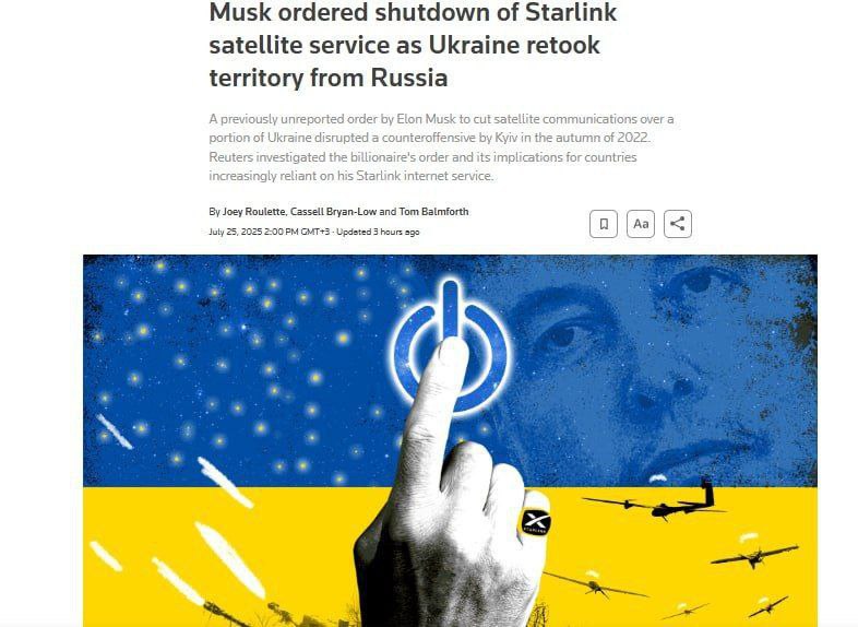 Reuters: Илон Маск якобы лично приказал отключить спутниковое покрытие Starlink над украинскими территориями во время контрнаступления в 2022 году. Статья поднимает сразу несколько фундаментальных тем: роль частного капитала в военных конфликтах, границы корпоративной этики, контроль над инфраструктурой информации, и — что особенно важно — влияние одного человека на геополитику.