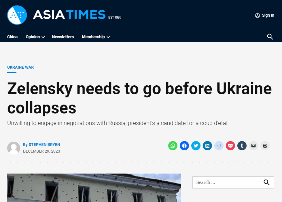 Asia Times: Зеленский должен уйти, прежде чем Украина развалится