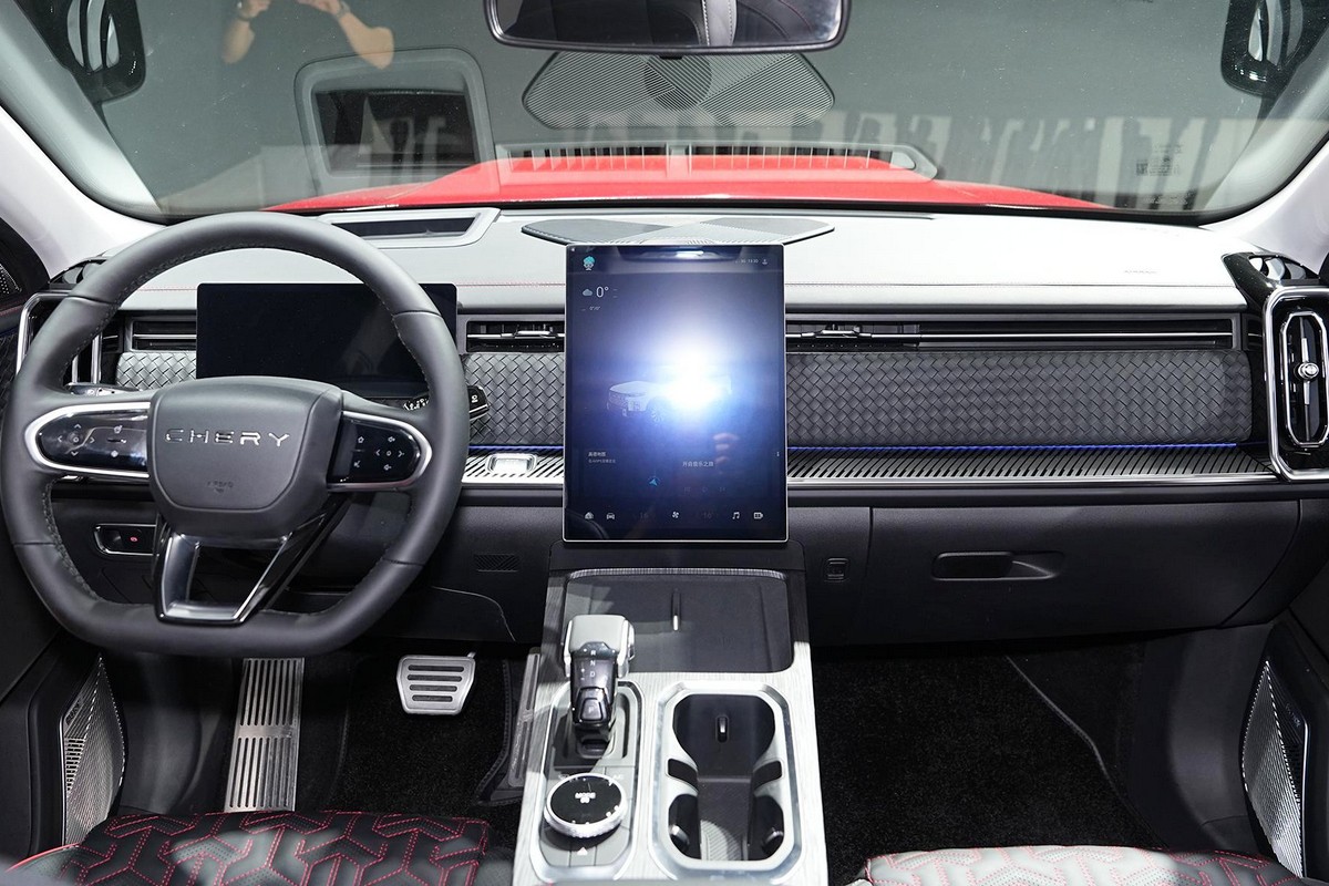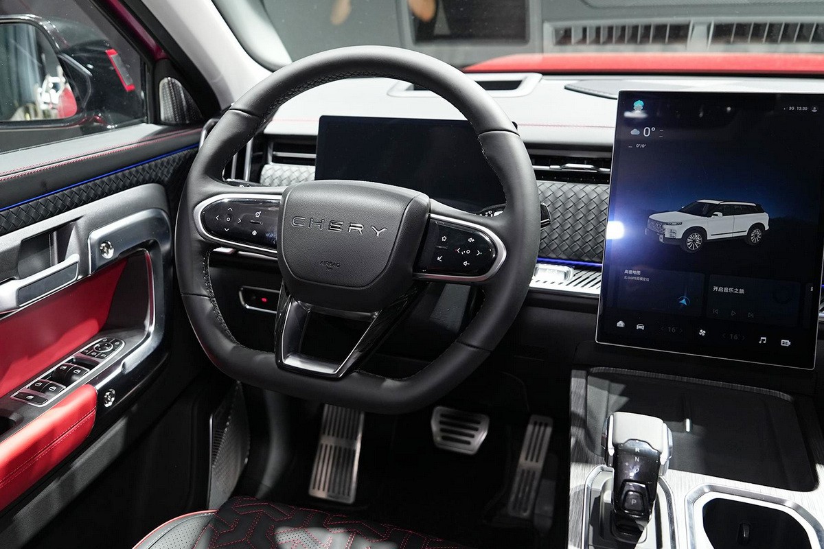 Собственные фишки второй модификации – новые бамперы, более узкая решетка с, напротив, увеличенной надписью Chery, внедорожная резина, подножки, небольшая лесенка у одной задней стойки крыши и компактный же бокс у другой. В салоне – отделанные черной плетеной кожей передняя панель и карты дверей, плюс красные кожаные вставки.