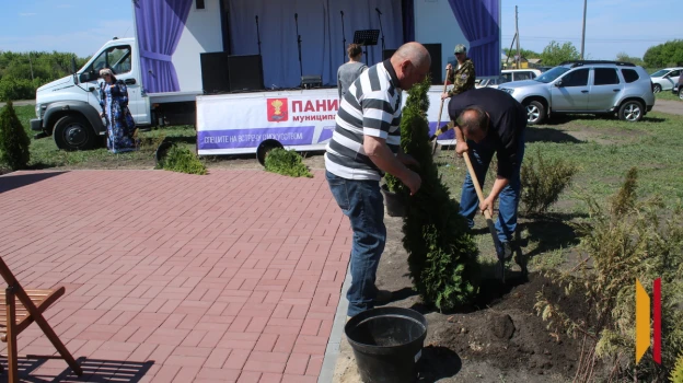 В селе Сергеевка Панинского района высадили туи в память о земляках – участниках Великой Отечественной войны в понедельник, 5 мая. На месте присутствовала корреспондент РИА «Воронеж».