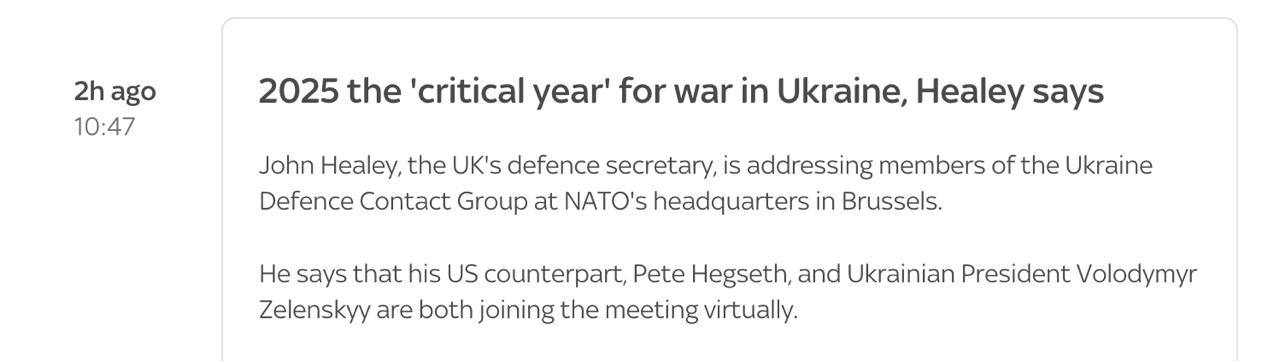 “2025 год — это решающий год для конфликта в Украине и критический момент,” — отметил Хили, не уточнив, в чем именно заключается значимость текущего этапа.