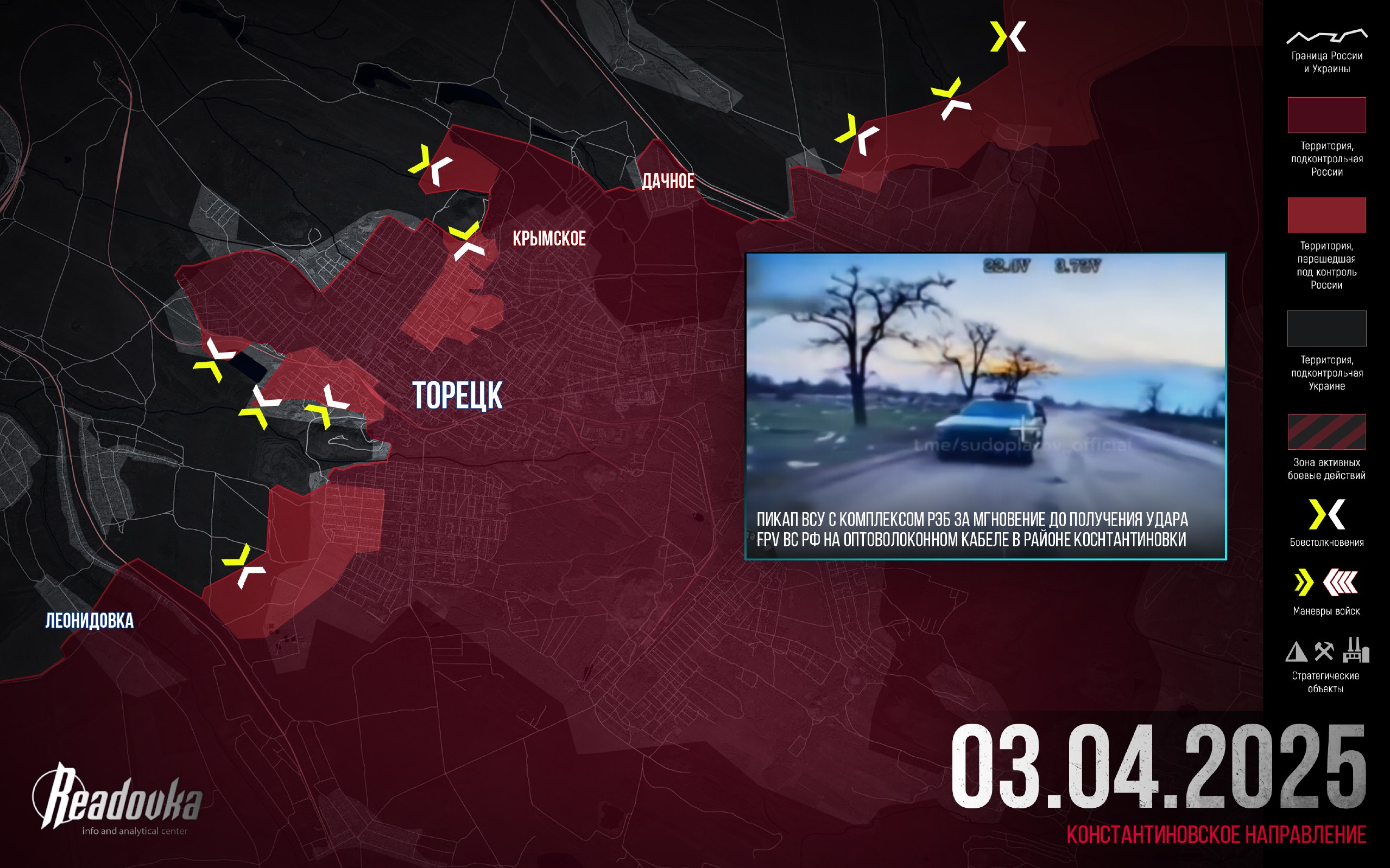 ВС РФ практически полностью нивелировали последствия прорыва ВСУ в Торецк – итоговая сводка Readovka за 3 апреля