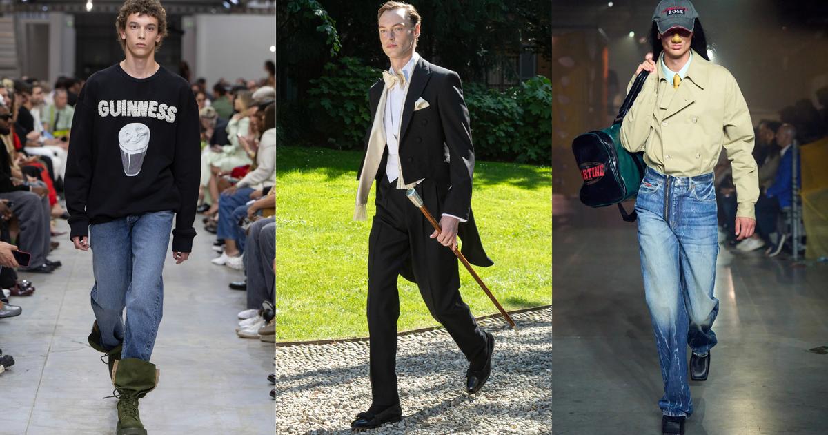 En comparaison de ces deux visions comme figées dans le temps (mais à deux époques différentes), JW Anderson avance toujours, regarde derrière « juste ce qu'il faut » pour créer une mode radicale, avant-gardiste… Résultat ? Anderson donne aux observateurs une vraie claque dans une saison milanaise morose. Le designer nord-irlandais livre là l'une de ses plus belles collections pour sa propre marque, fourmillant d'idées, à la fois virtuoses, conceptuelles (les pulls comme des maisons irlandaises, ces jupes pour homme comme des tentes) et franchement amusantes comme ces cravates géantes, ces pulls Guinness qui ont mis en émoi une partie de la presse britannique, et ces pièces ornées des mots « Real Sleep » (« vrai sommeil ») déjà viraux sur les réseaux sociaux. « pour moi, c'est une collection résolument jw anderson, qui rappelle certains de nos défilés de londres passés, affirme-t-il. Je voulais revenir à ces années, d'ajouter quelques souvenirs d'enfance aussi, mais aussi d'expérimenter avec la mode. J'avais envie de me lâcher ! » Sublimes, les blousons de motard en cuir sans manches à poches, les bombers gonflés, les parkas huilées façon Barbour et le sac reprenant l'empeigne d'un mocassin font très envie. Tonnerre d'applaudissements pour le designer le plus talentueux du moment.