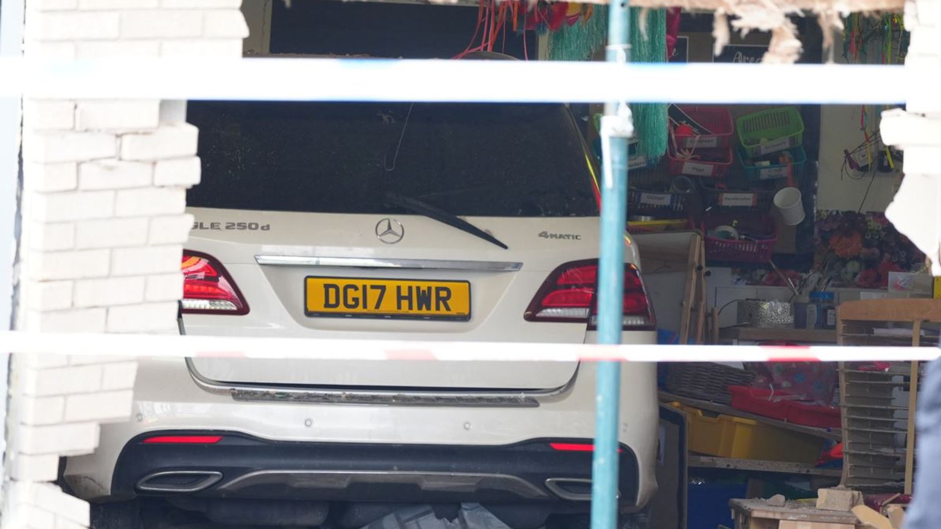 A Mercedes car has crashed through the wall of a primary school before stopping in a classroom.