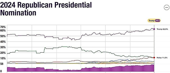 Менее чем за две недели до начала праймериз (кокусы республиканцев в штате Айова пройдут 15 января), Трамп по итогам опросов, опубликованных RealClearPolitics, набирает более 60 процентов голосов среди избирателей-республиканцев в национальном масштабе, по-прежнему опережая своих главных соперников — губернатора Флориды Рона Десантиса и бывшего посла США в ООН Никки Хейли.