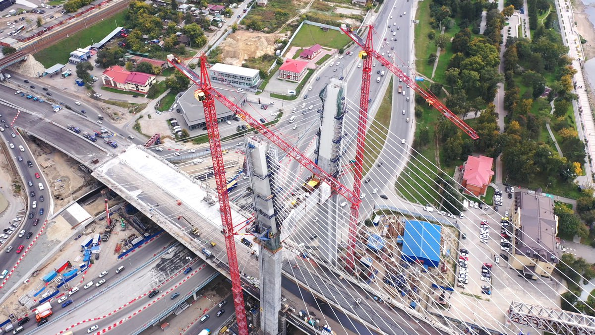 — Полностью завершены работы по монтажу и установке на опорные части металлических и сталежелезобетонных пролётных строений, практически завершена установка блоков парапетного ограждения, продолжается устройство дорожной одежды, — сообщили в «ВИС».