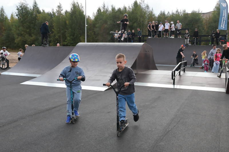 С первого дня здесь много детей и молодежи: ребята тренируются на роликах, самокатах, трюковых велосипедах и досках. А родители и другие спортсмены могут наблюдать за ними в прямом эфире.