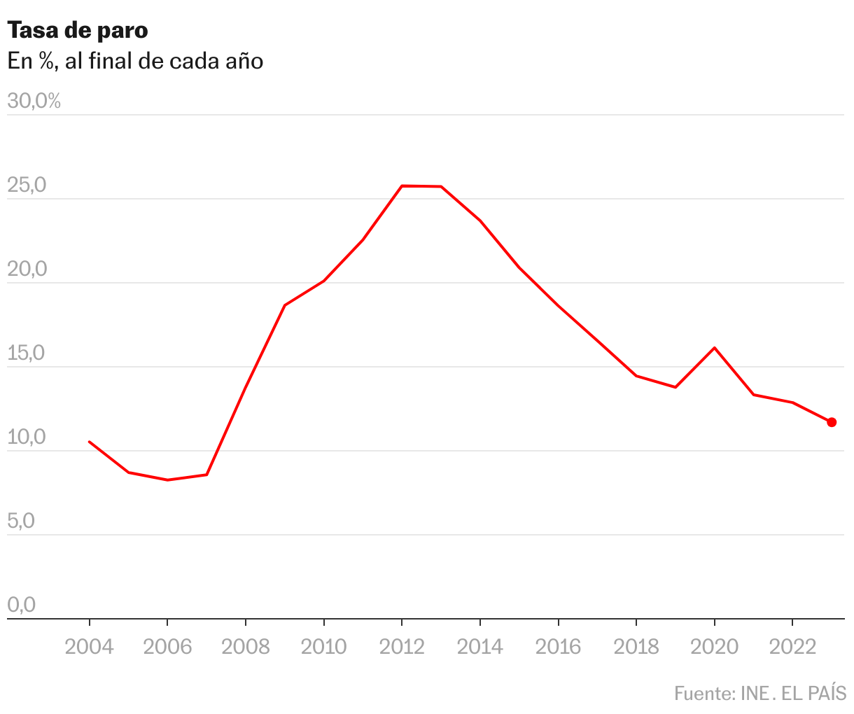 El Instituto Nacional de Estadísitca (INE) ha certificado este viernes la enorme fortaleza del mercado laboral español. La economía española ganó 783.000 nuevos ocupados en 2023, según los datos de la Encuesta de Población Activa (EPA) correspondientes al último trimestre del año. Esta ganancia, marca un nuevo récord de personas trabajando en España en 21.246.900 trabajadores y constata el vigor de un mercado laboral que finalmente no ha materializado las señales de debilitamiento que dio en algunos momentos del ejercicio. Solo en 2021, debido a la recuperación tras la crisis del covid, se superó esta cuantía (840.600), pero lo anómalo de aquella situación, convierte al dato de 2023 en récord de empleo en un año para España. Al tiempo, el número de parados se redujo el pasado año en 193.400, con lo que la tasa de paro oficial con la que cerró España en 2023 bajó al 11,7% de la población activa.