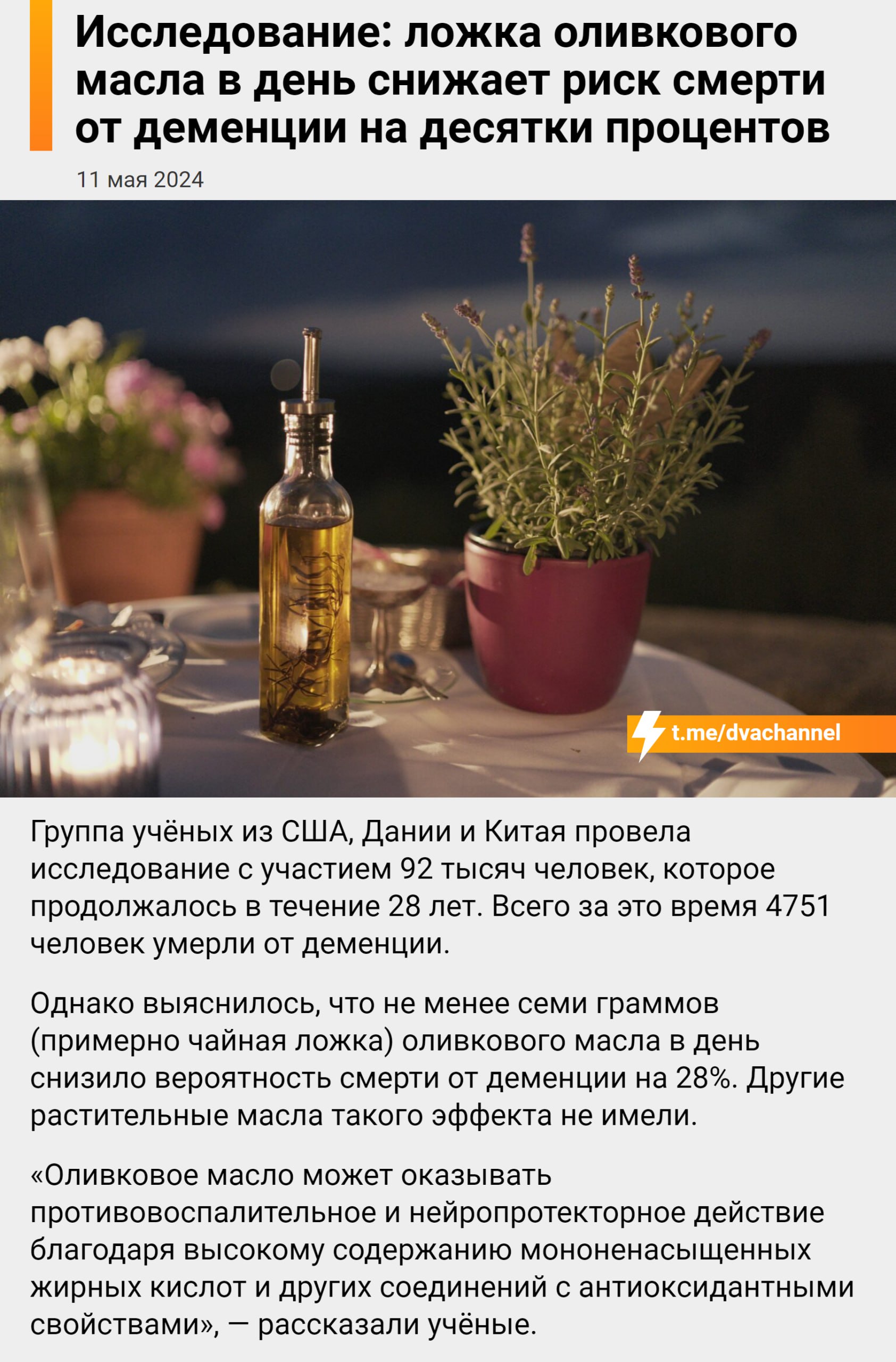 ложка оливкового масла в день снижает риск смерти от деменции на десятки процентов