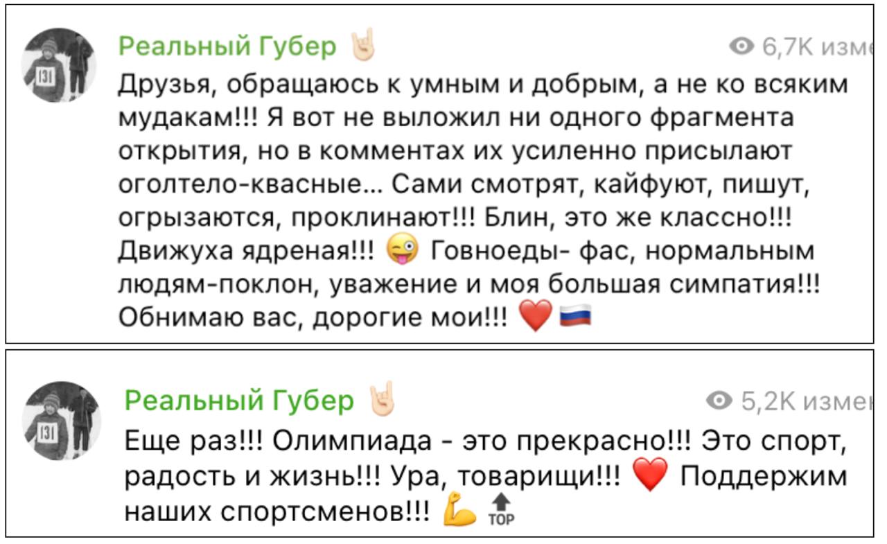 Телекомментатор изо всех сил старается убедить возмущенных зрителей в отсутствии вкуса. В выражениях Губерниев не стесняется (см. скрины его постов).