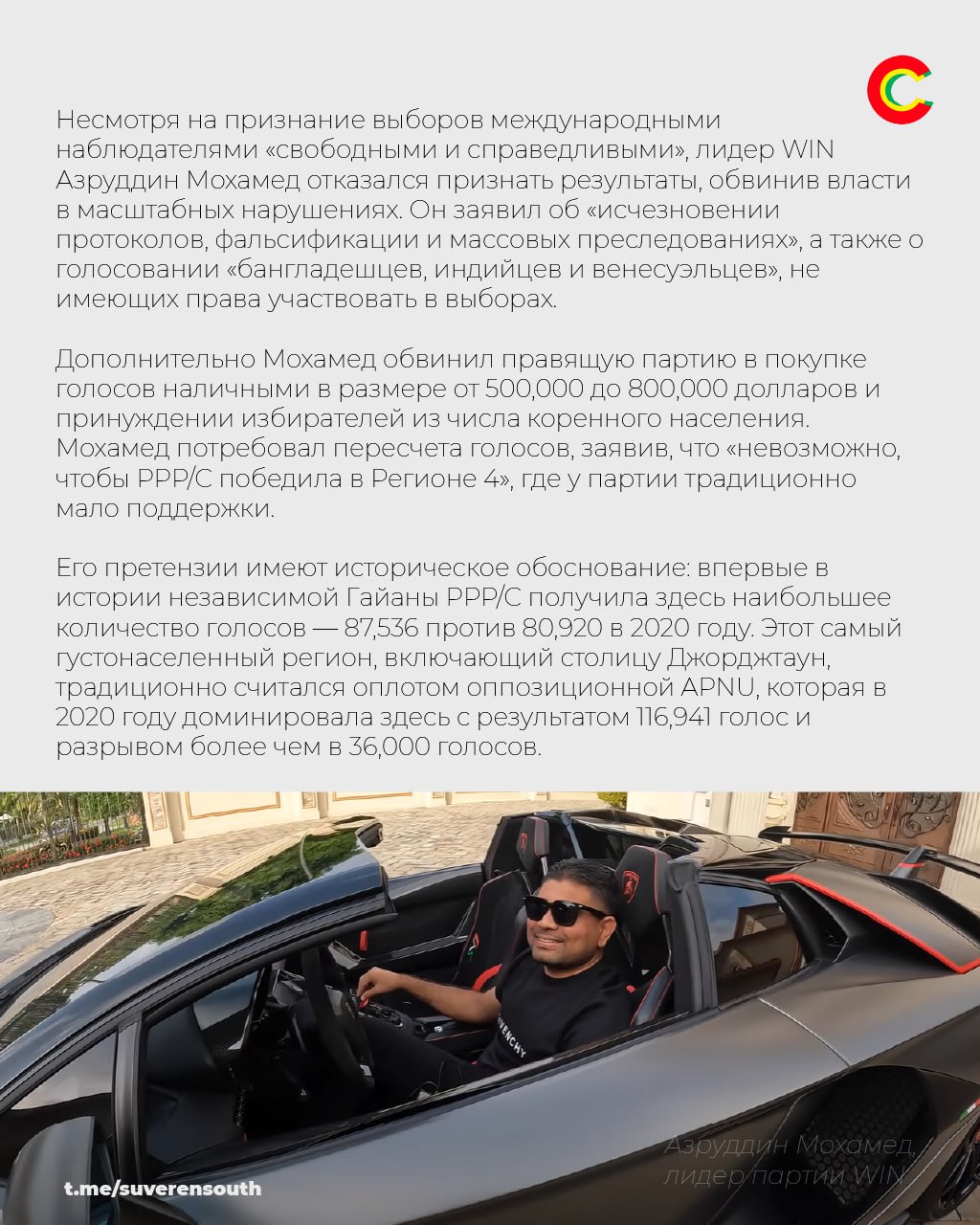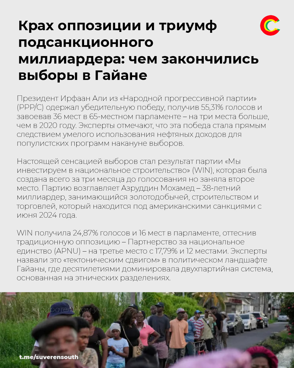 🇬🇾 Крах оппозиции и триумф подсанкционного миллиардера: чем закончились выборы в Гайане