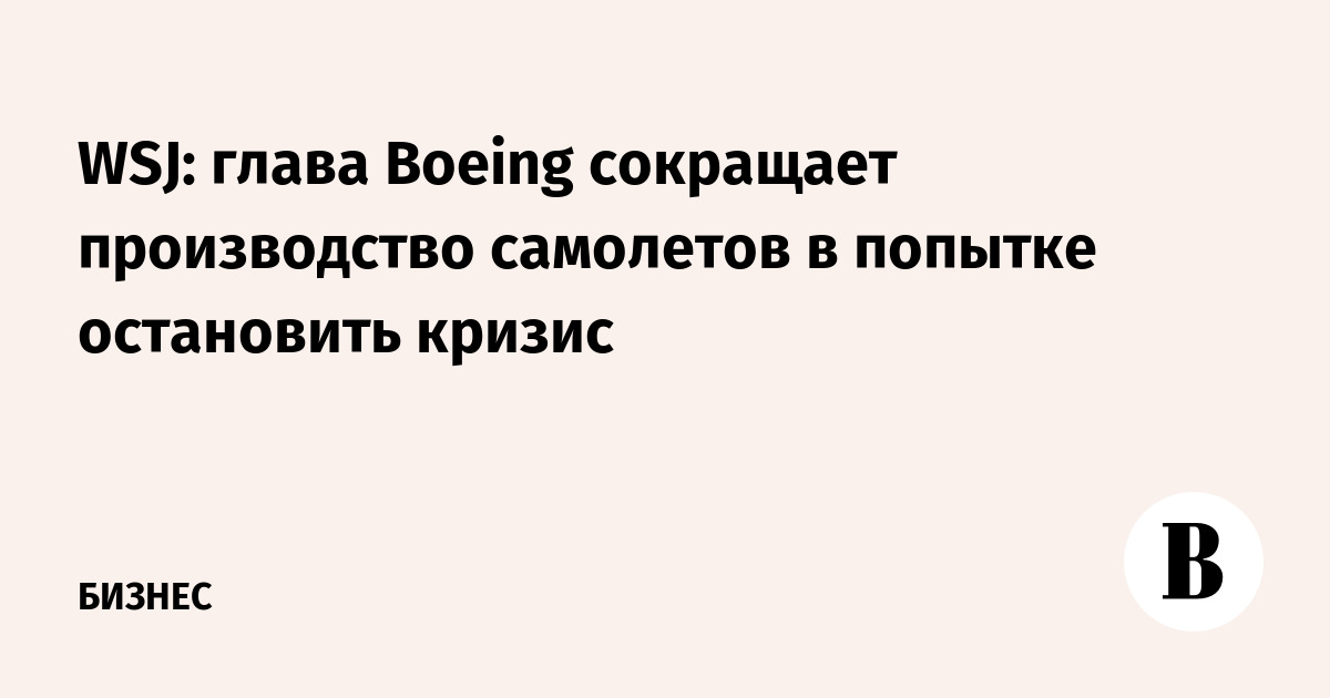 Новый генеральный директор Boeing Келли Ортберг сокращает производство самолетов, чтобы остановить кризис в компании, которая остается в опасном финансовом положении, сообщает The Wall Street Journal (WSJ).