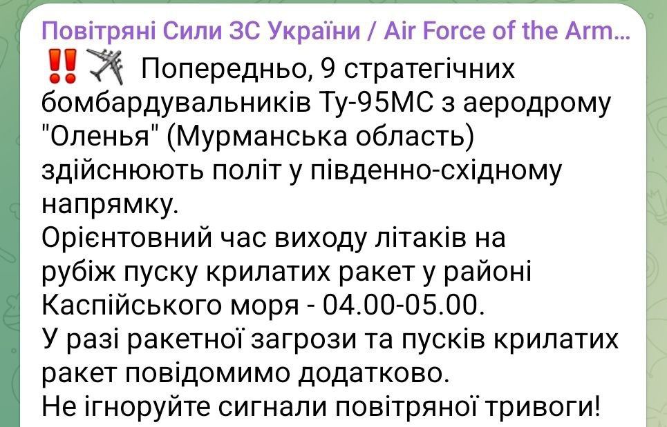🪖 Украинские мониторинговые ресурсы сообщают о новых вылетах от 4 до 7 бортов ТУ-95мс с аэропорта Энгельса