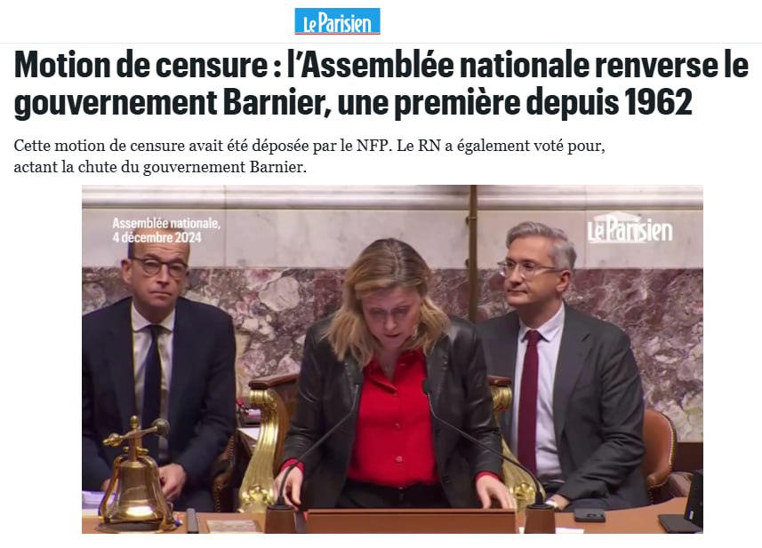 Парламент Франции проголосовал за роспуск правительства страны – Le Parisien