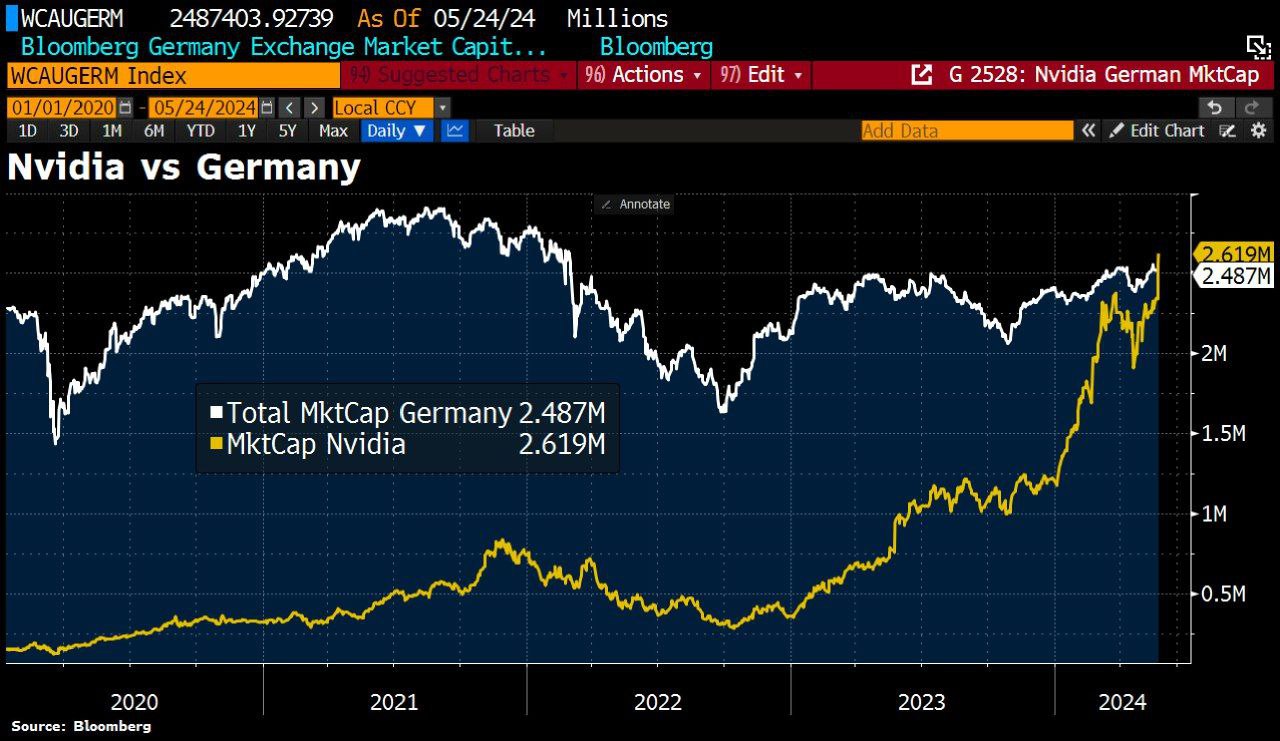 Весь немецкий рынок акций стоит меньше, чем одна компания Nvidia.