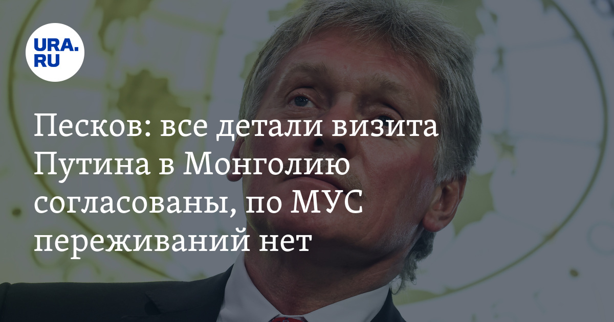 Предстоящий визит президента России Владимира Путина в Монголию полностью согласован. На вопрос корреспондента URA.RU о возможных переживаниях из-за членства Монголии в Международном уголовном суде (МУС), пресс-секретарь президента Дмитрий Песков заявил, что в Кремле нет никаких опасений.