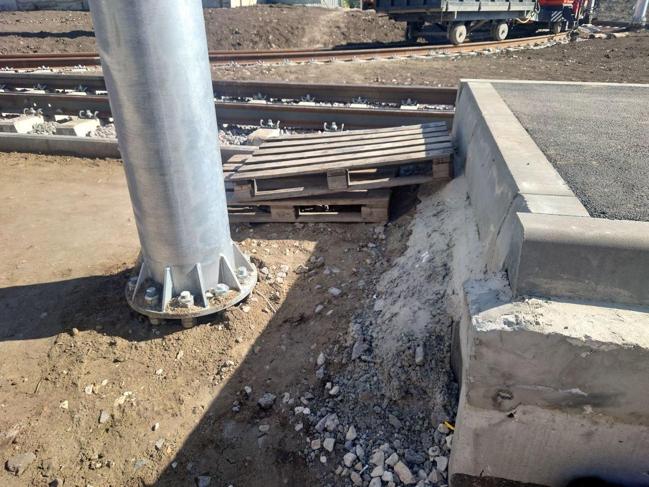 Саратовцы обратили внимание на странное благоустройство трамвайной остановки на 6-й Дачной в Ленинском районе. Там компания «Транстоннельстрой» ведет реконструкцию трамвайной линии № 6.