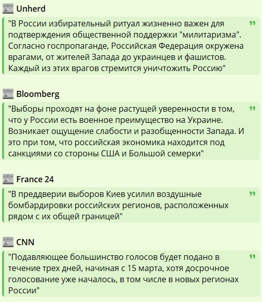Выборы в России - для Запада отличный повод продемонстрировать, что "мы не согнемся". Потому что риторически можно не признавать результаты (юридически нельзя, об этом и речи нет). Поэтому главные сообщения сейчас пойдут про нелегитимность выборов на "новых территориях". Удивляться этому не надо и реагировать на это смысла никакого нет - у этого органчика так уж бугорки на валике расположены...