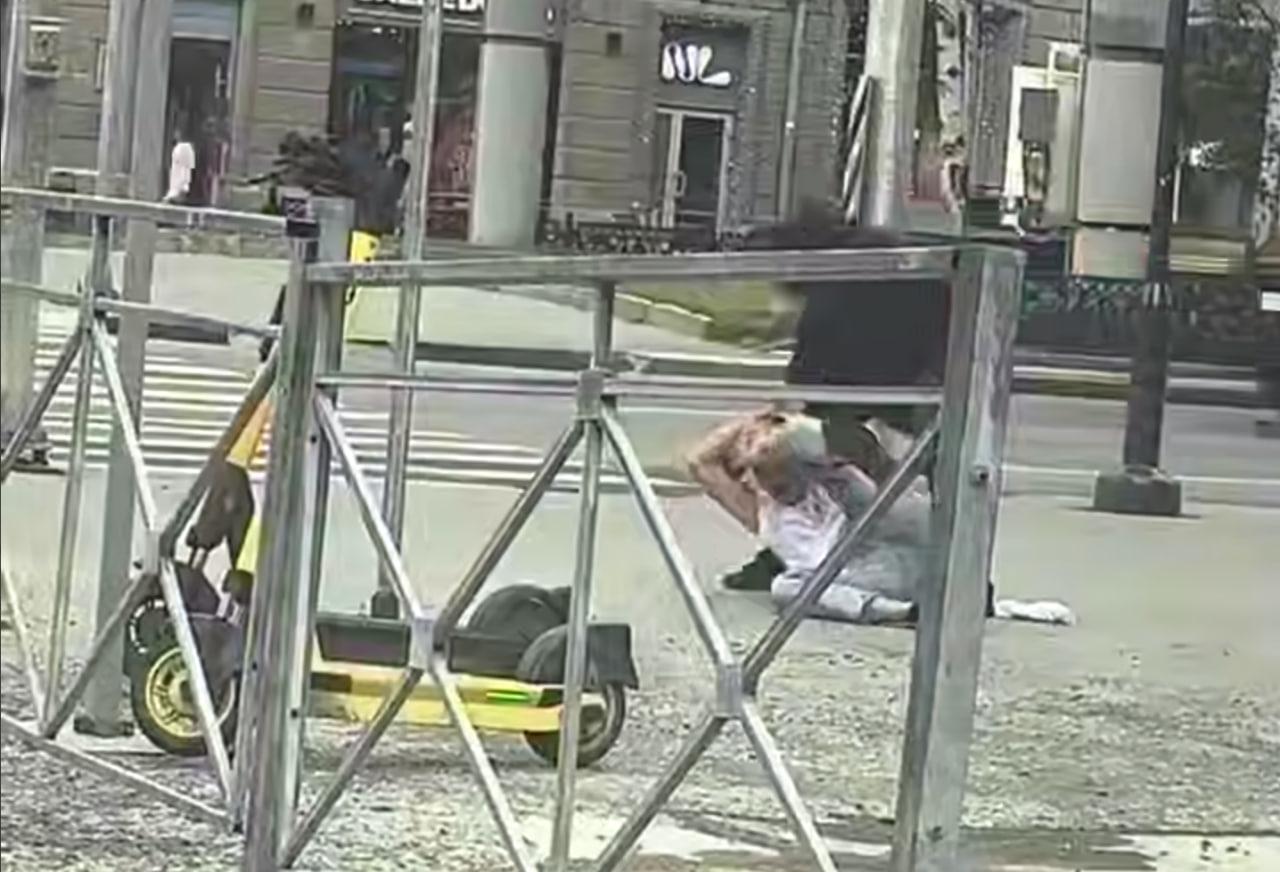 Двое молодых людей устроили драку на пересечении Красного проспекта и улицы Ядринцевской. О потасовке в центре Новосибирска сообщили читатели Telegram-канала «АСТ-54 Black».