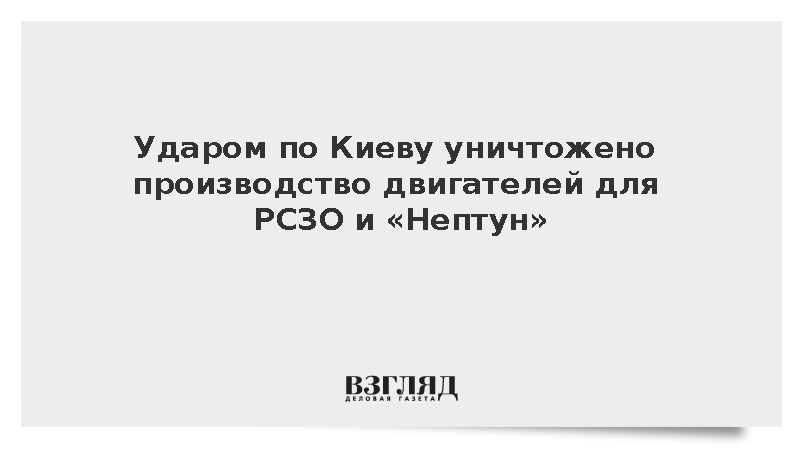 В результате удара по Киеву полностью разрушен подземный цех по производству двигателей для ракет РСЗО, «Нептун» и беспилотников, где находились иностранные специалисты, сообщил координатор пророссийского николаевского сопротивления Сергей Лебедев.
